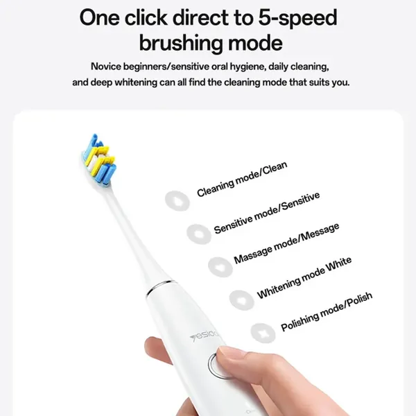 【5 Cleaning Modes】Choose from Clean, Sensitive, Massage, Whitening, and Polish modes to customize your oral care routine.