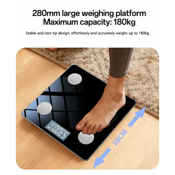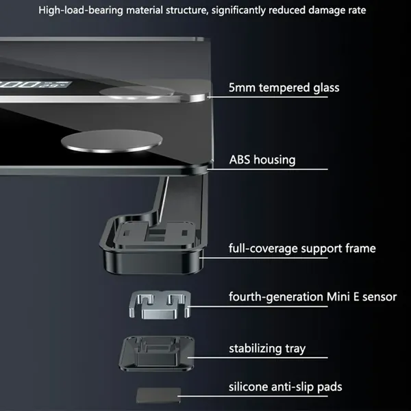 【Durable Construction】Built with a 5mm thick tempered glass platform and ABS material, providing a sturdy and long-lasting design that can withstand daily use.