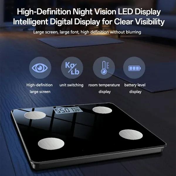 【Clear LED Display】Large, high-definition LED screen offers easy-to-read measurements, supporting kg/lb unit switching, room temperature display, and battery level indication.