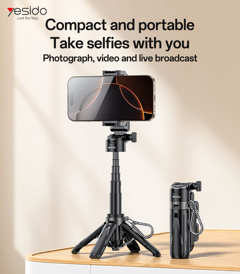 SF29 Yesido 360 Rotation 43CM Length BT5.2 Detachable Remote Control Reinforced Tripod Metal Mini Selfie Stick.