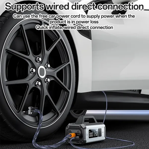 【DC Input Functionality】Includes a cigarette lighter DC cable, allowing tire inflation even when the device's battery is depleted by connecting to the car's power source.