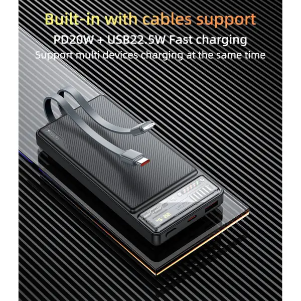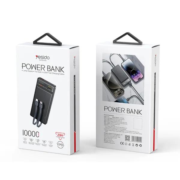 YP55 Yesido 10000mAh PD20W+USB22.5W Fast Charging Transparent Power Status Indicator With Cable Power Bank.