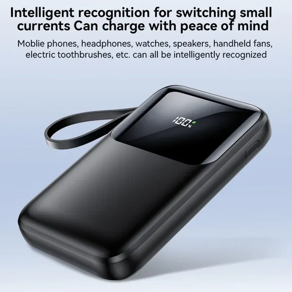 YESIDO YP75 10000mAh Digital Display Portable Charger 22.5W Fast Charging Power Bank Built In iP Cable