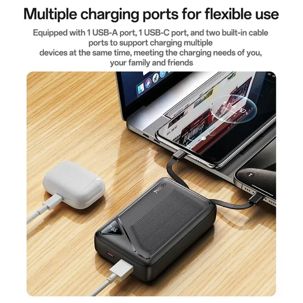 YESIDO YP85 20000mAh Power Bank with Built In Type C + iP Cables Digital Display 22.5W Fast Charging Portable Charger