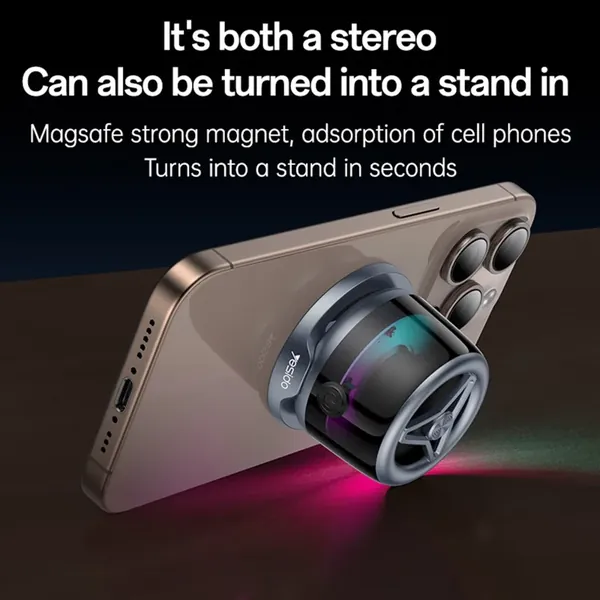 【Magnetic Attachment】Featuring N52 magnets, this speaker easily attaches to metal surfaces or your MagSafe-compatible phone, doubling as a convenient stand.