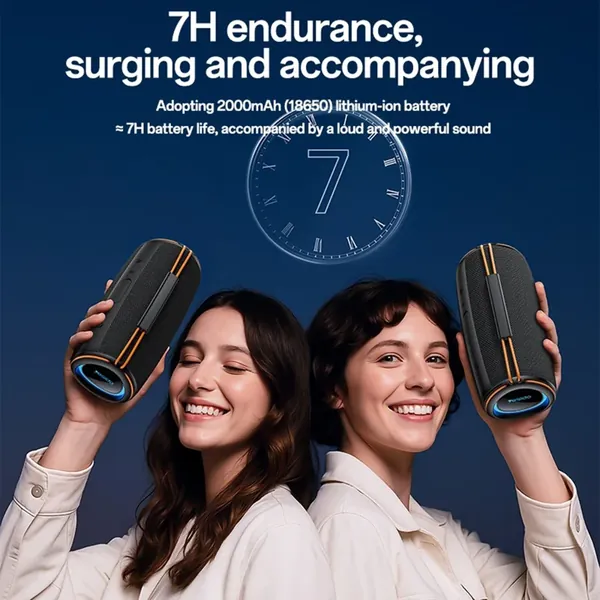【Long-Lasting Battery】With up to 7 hours of playtime at 80% volume, this speaker keeps the party going both indoors and outdoors.