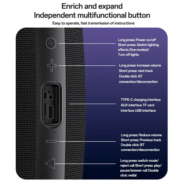 【Versatile Playback Options】Enjoy multiple connectivity options including Bluetooth-compatible, TF card, USB, AUX, and TWS for seamless audio playback from various sources.