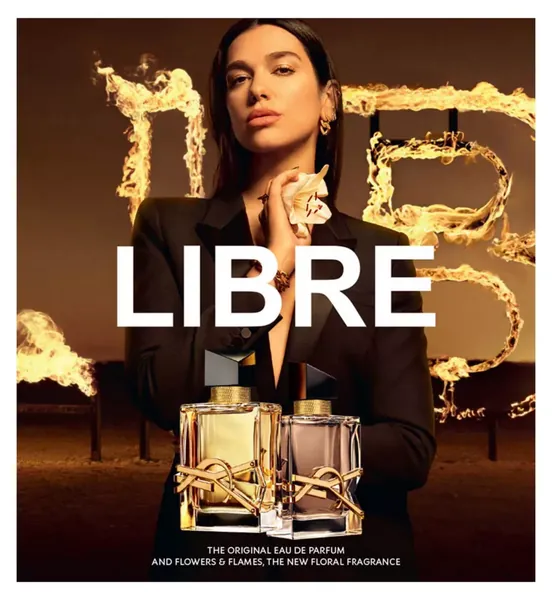 LIBRE FLOWERS & FLAMES, the signature LIBRE scent, enhanced with a sultry floral blast. Radiant and feminine, featuring the unique and luscious desert lily, with a sun-kissed palm flower accord. Starring Dua Lipa, Global Fragrance Ambassador for YSL Beauty.