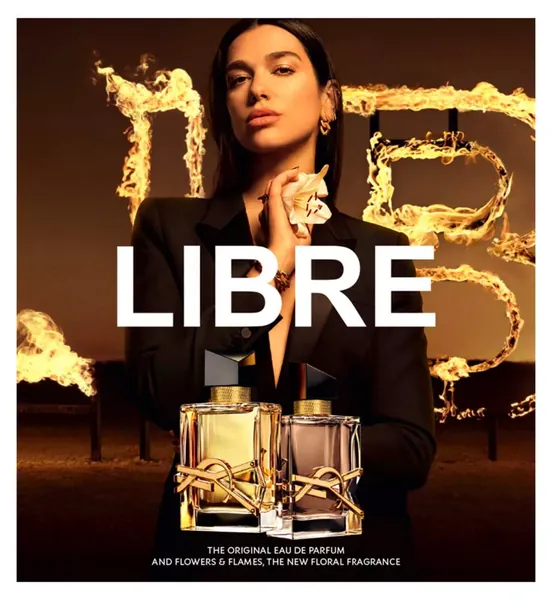 LIBRE FLOWERS & FLAMES, the signature LIBRE scent, enhanced with a sultry floral blast. Radiant and feminine, featuring the unique and luscious desert lily, with a sun-kissed palm flower accord. Starring Dua Lipa, Global Fragrance Ambassador for YSL Beauty.