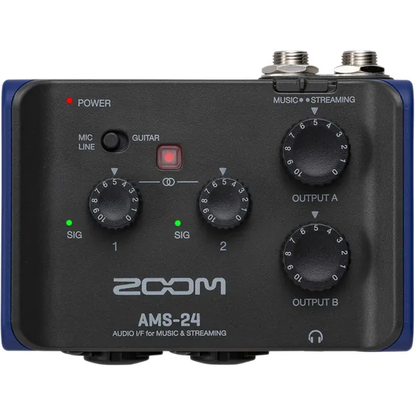 On-the-go musicians looking for a compact and versatile audio interface will appreciate the streamlined and easy-to-use feature set on the Zoom AMS-24, an ultraportable solution for recording and streaming to a Mac/Windows computer or iOS/Android mobile device with two TRS/XLR inputs, two TRS outputs, two headphone jacks, a USB-C connector, and modes for both streaming and recording applications.