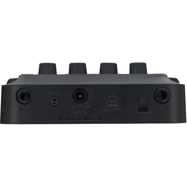 The G1 Four provides one 1/4" instrument input, one 3.5mm input for mobile devices and media players, and a combined amp/headphone output. The unit runs on four AA batteries, giving you up to 18 hours of run time. You can also power the unit with a dedicated ZOOM AD-16 AC adapter or over USB.