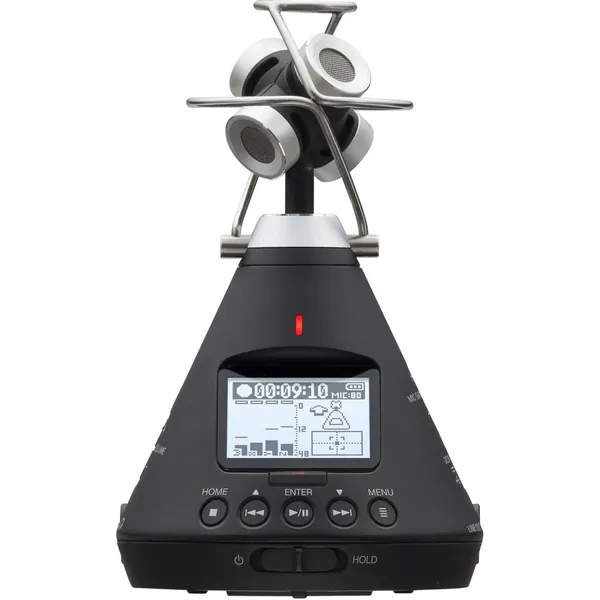 It features an Ambisonics mic array with four microphone capsules, which can be utilized to record in Ambisonics, stereo binaural, or standard stereo modes, making it well suited for detailed reproduction of studio-based instrument ensembles and solo performances, audiences, sound effects, EFP, and more. The H3-VR supports full-sphere surround sound recording at up to 24-bit / 96 kHz, as well as real-time stereo/binaural monitoring and onboard Ambisonics A-to-B conversion, eliminating the need for additional processing with a computer in post. You can even export your Ambisonics recordings as stereo, binaural, or 5.1 audio files using the free Zoom Ambisonics Player software (downloadable to a Mac or Windows computer).
