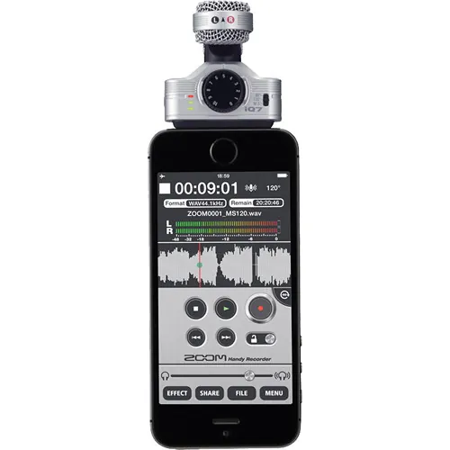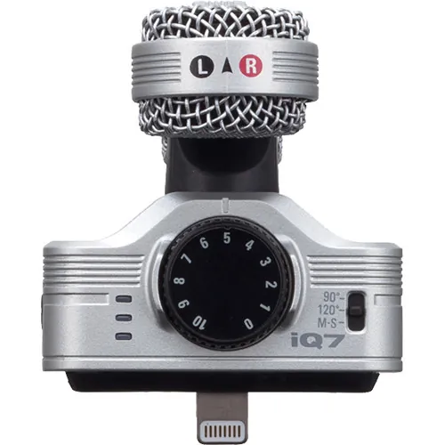 The iQ7 records broadcast-quality digital audio, and offers a stereo-width slider to adjust how "wide" you want the resultant recording to feel. The controls for width control and gain are easy to master. Optimized for the Zoom Handy Recorder App, the iQ7 comes with a removable spacer that allows it to be used with most iPhone, iPad, and iPod cases. It also ships with a foam windscreen.