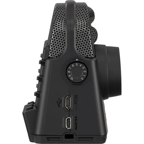 To view your video recording in high definition, you can connect to an HDMI TV using the micro-HDMI type D output. A micro-USB port allows for connection to a computer or iOS device (requires separately available adapter) so you can use the Q2n-4K as a web camera for live streaming, as a USB microphone for podcasts, or as a card reader to transfer recordings (computer connection only).