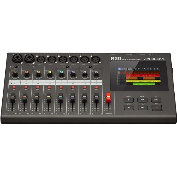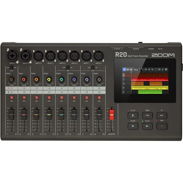 An intuitive, all-in-one tabletop solution for recording, editing, and mixing music, the Zoom R20 Portable Multitrack Recorder merges a DAW-inspired touchscreen interface, color-coded tactile controls, and up to 16 total tracks so that solo artists and full bands alike can produce songs and let their creativity flow without relying on a computer. If a DAW-based workflow is needed, the R20 can serve as an 8x4 USB audio interface for virtually any audio production software.